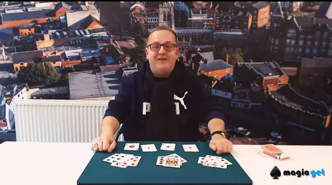 经典的四 A 定位 / 出现类纸牌流程,核心是通过切牌、分组等操作让四张 Aces 从牌叠中 “神奇归位”,由经典魔术手法演变而来。