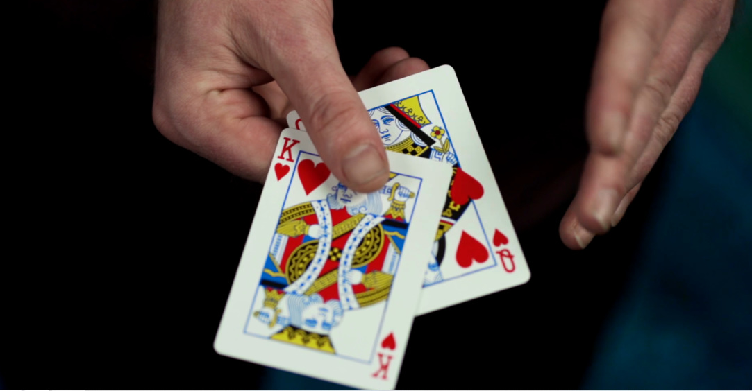 - 取出红桃 K 和红桃 Q,拇指一抹就将红桃 K 的桃心 “移” 到红桃 Q 上,红桃 K 对应位置变空白。